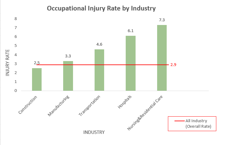 Healthcare workers are at higher risk for workplace injury and illness compared to those working in construction, manufacturing, or transportation sectors.